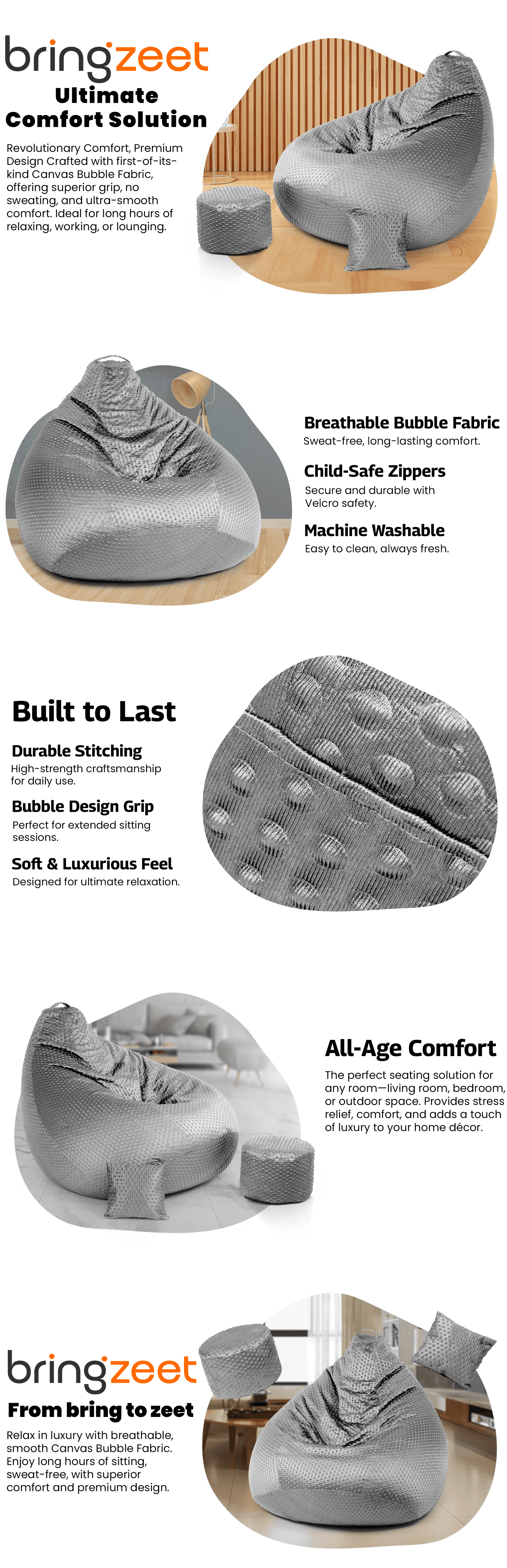 Airest™ Silver 5XL Bean Bag Chair | Ready to Use | Filled with Beans